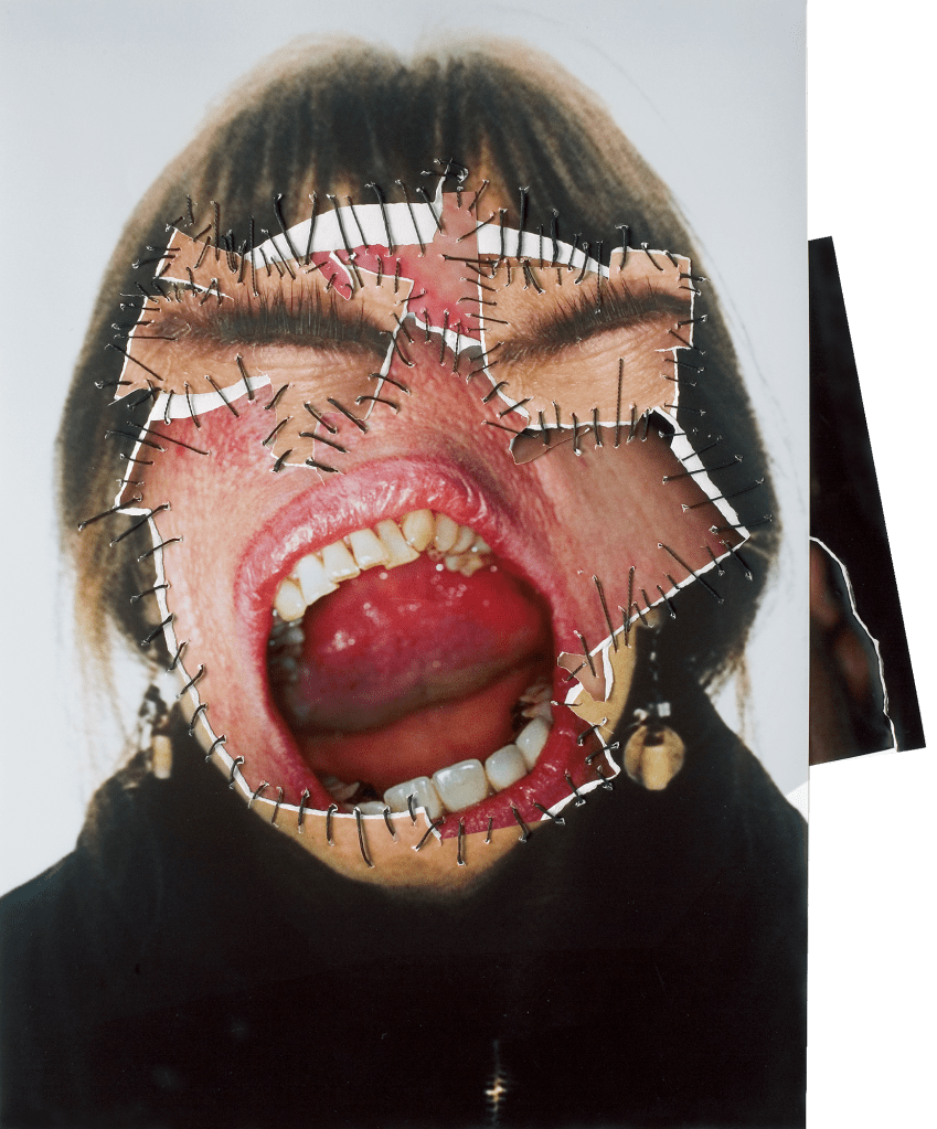 Le sue celebri opere di cucito fotografico — che lei definisce Fotovernähungen — sono tra le sperimentazioni più intense nel panorama del collage contemporaneo.