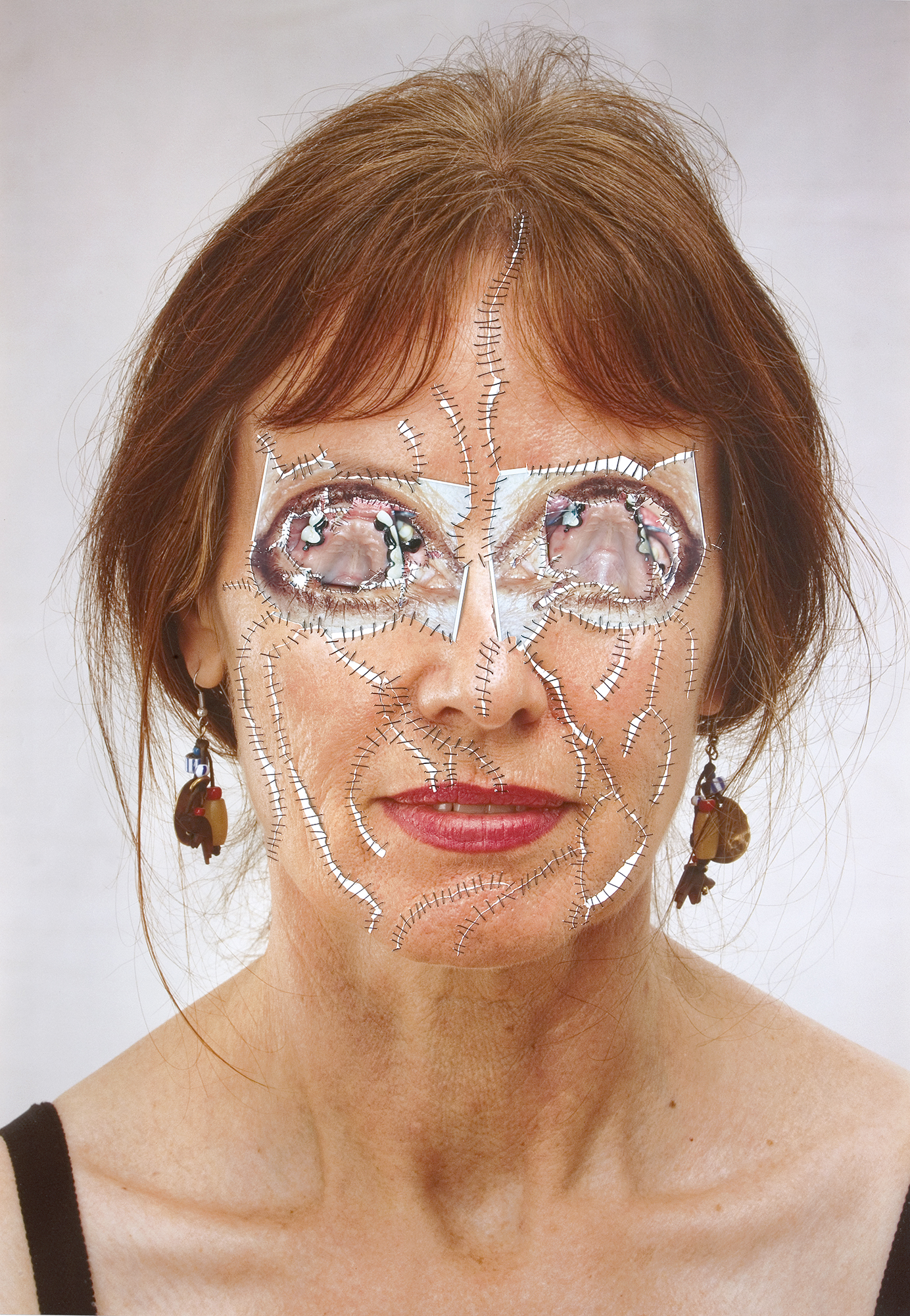 Le sue celebri opere di cucito fotografico — che lei definisce Fotovernähungen — sono tra le sperimentazioni più intense nel panorama del collage contemporaneo.