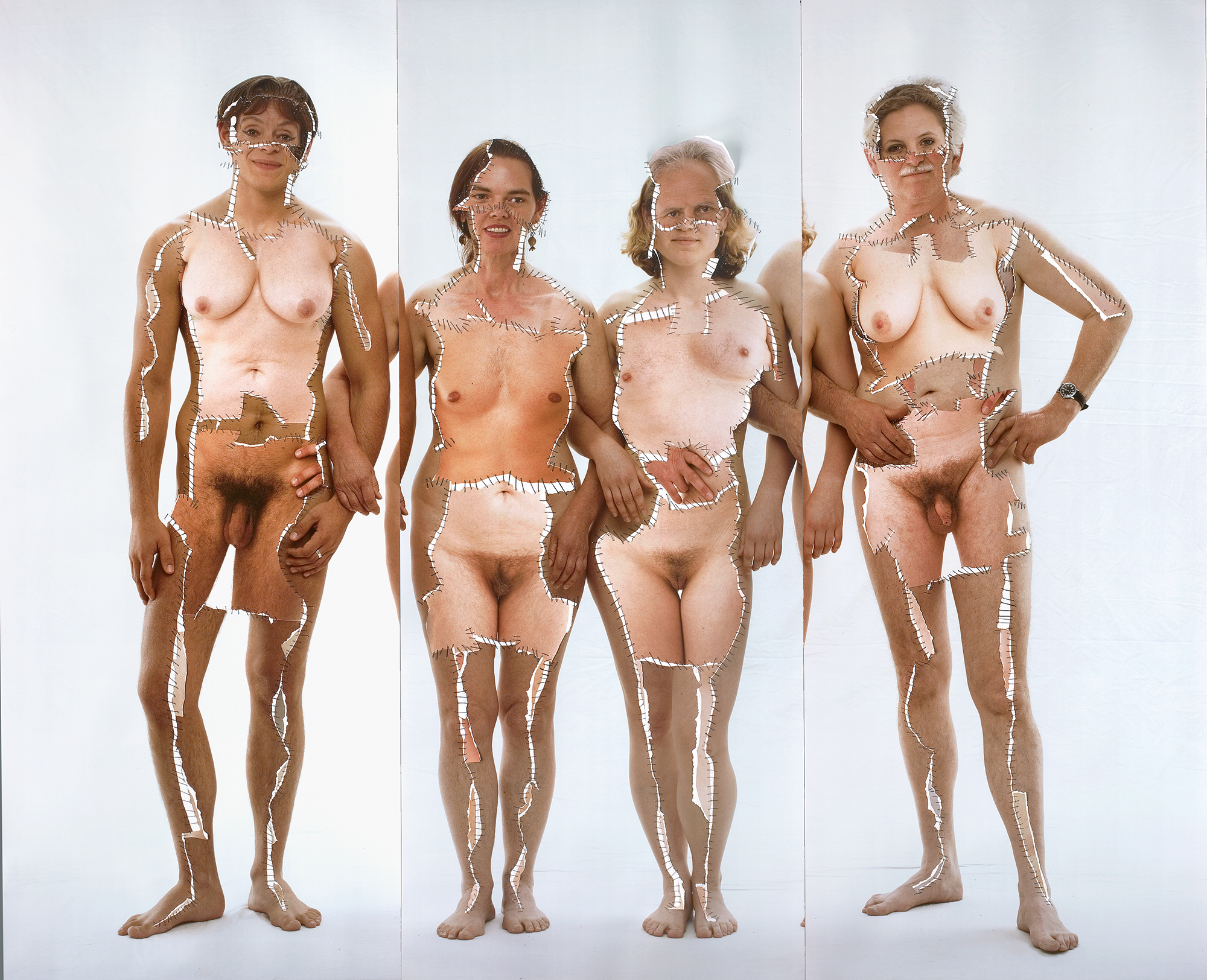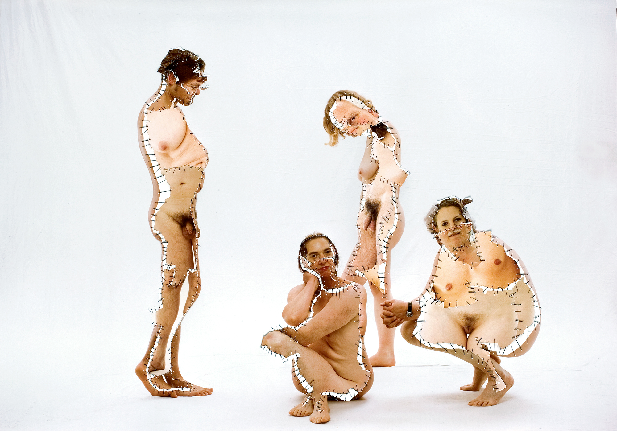 Nella serie Grima (1989–2010), affronta invece le categorie di genere attraverso collage quasi grotteschi, in cui corpi differenti vengono uniti e ibridati. Le immagini mettono in crisi i confini dell’individualità biologica e sociale, interrogando i limiti stessi dell’identità.